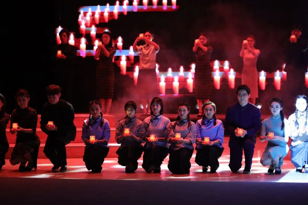 “语言有直击人心的力量,可以唤起当代青年的历史共鸣。”该剧导演、传媒学院语言传播系主任张齐说。演出尾声,当《红烛魂》歌声响起,红色烛光漫溢全场,这极具冲击力的一幕让全场观众为之动容。