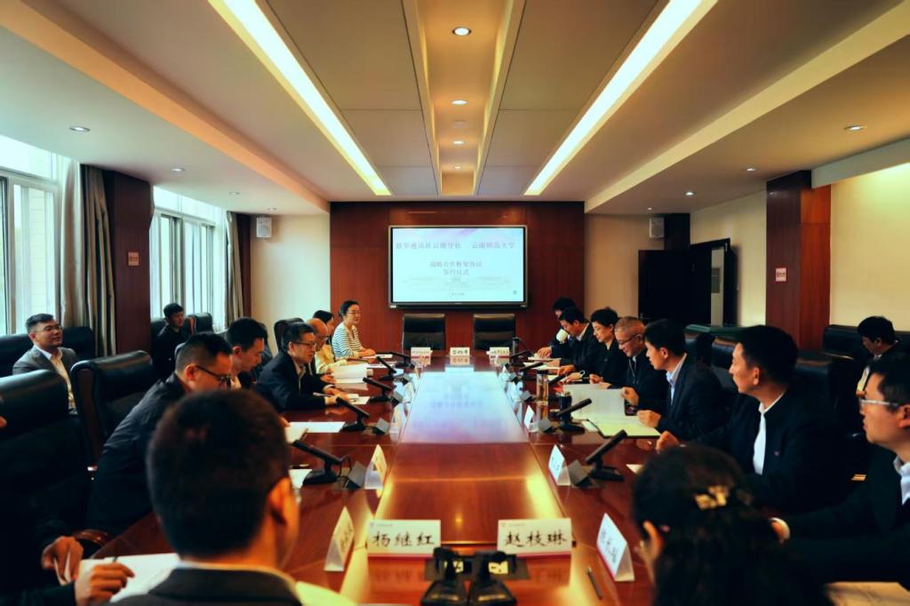 张祖武对新华通讯社云南分社长期以来对学校工作的支持表示感谢。他指出,双方前期在云南省舆情研究基地建设、学生实习实践、新闻信息发布、人才联合培养等领域已取得良好的合作成效。现阶段学校正深入实施“151战略行动计划”,探索了一条服务云南基础教育高质量发展的有效路径。期待校社双方以此次战略合作协议签署为起点,发挥校社优势,挖掘合作资源,在讲好云师故事、传承西南联大精神、国际化人才培养、思政教育创新、特色智库研究等领域继续开展深入合作。