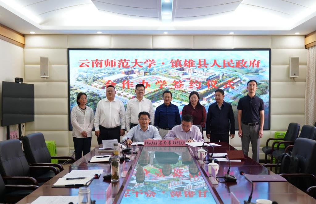 6月12日,云南师范大学与镇雄县人民政府在镇雄县签署合作办学协议,进一步深化校地合作,携手共建一所高起点、高标准、高品质的公办九年一贯制学校——德馨学校。我校副校长孟庆红,基础教育集团直属学校党委书记曾东风,镇雄县委书记肖顺兴,县委副书记、县长杨绪春,县人大,县政协有关领导出席仪式。杨绪春和曾东风代表双方签订合作办学协议。