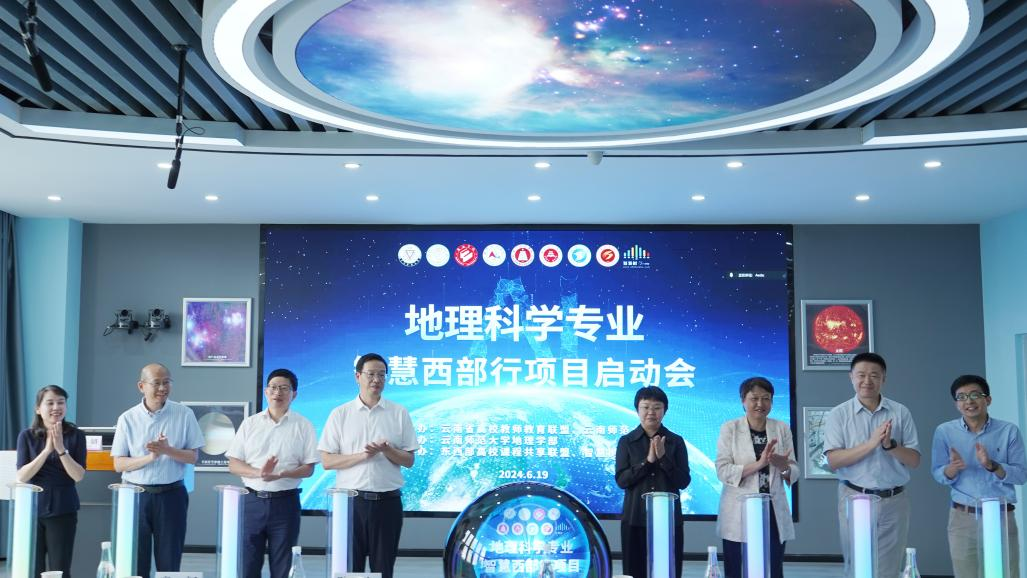 6月19日,“地理科学专业智慧西部行项目”启动会在我校举行。该项目是我校联合东西部高校课程共享联盟、云南省高校教师教育联盟、云南省本科高校课程建设专家指导委员会、泰国清迈大学、智慧树网共同推动的教育数字化创新举措。云南师范大学副校长陈正权,文山学院校长谷雨,曲靖师范学院副校长郭丽红,玉溪师范学院副校长章新,楚雄师范学院副校长彭燕梅参加活动。启动会由地理学部党委书记周妍主持。