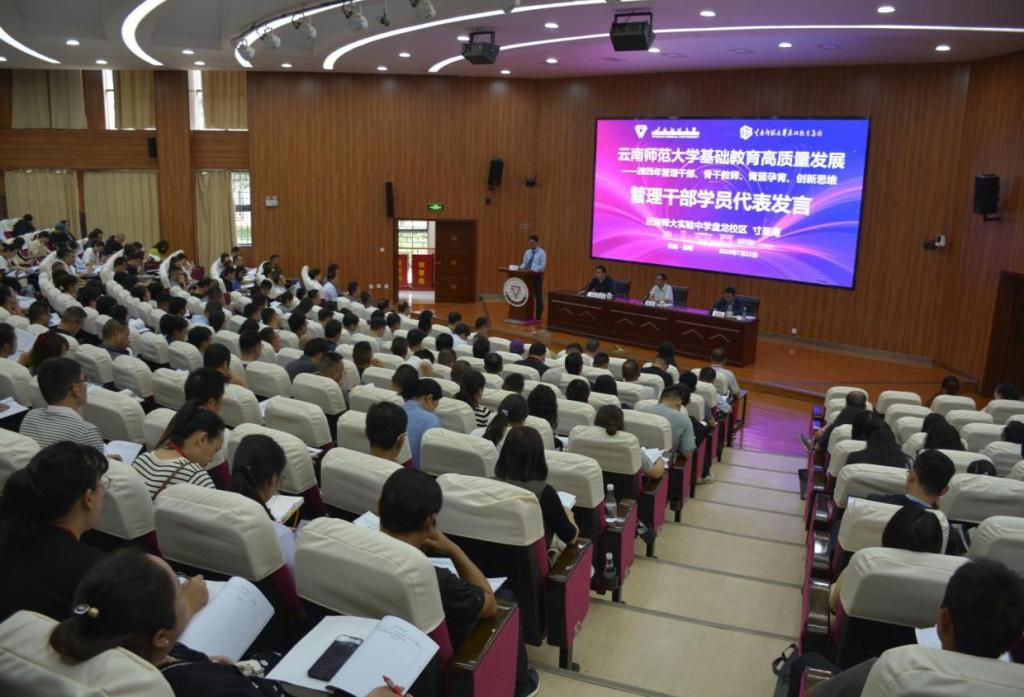 云南师范大学实验中学盘龙校区教务主任寸圣甫、禄劝彝族苗族自治县第一中学教师邵加玲老师、云南师范大学文学院应届毕业生赵静、鹤庆县第一中学学生杨世贞分别代表管理干部、骨干教师、“青蓝教师孕育计划”及创新思维训练营学员作表态发言。