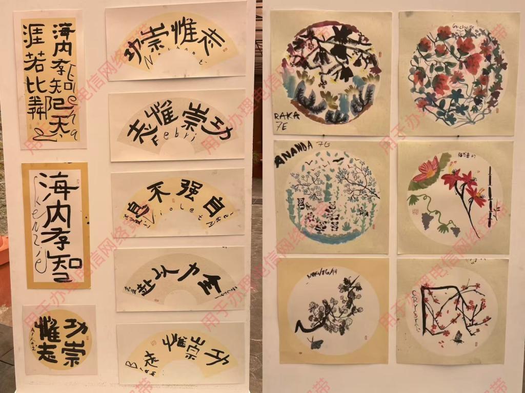 营员们通过11天的学习,初步掌握了丰富多彩的中华文化技能。营员们在结营仪式上表演了《半个月亮爬上来》《茉莉花》等民歌以及佤族舞蹈《黑珍珠》、藏族舞蹈《次仁拉索》、傣族舞蹈《傣家小妹》等中国少数民族舞蹈;武术舞龙的融合展演彰显了青春、动感与活力;非遗手工课作品展让营员们感受了剪韵、染趣;书法展以文字为载体,传递了“墨韵中华”;国画作品则展现了彩墨流转间晕染出的风雅气韵。教师团代表何纾老师与杨江波老师携手带来《锦瑟》,伴随着歌唱家歌声旋律婉转起伏,书法家现场泼墨挥毫,乐声与墨香交织,声韵美感与书法意蕴相融,将汇报演出氛围推向高潮。最后,营员代表展示了亲手制作的瓦猫工艺作品。