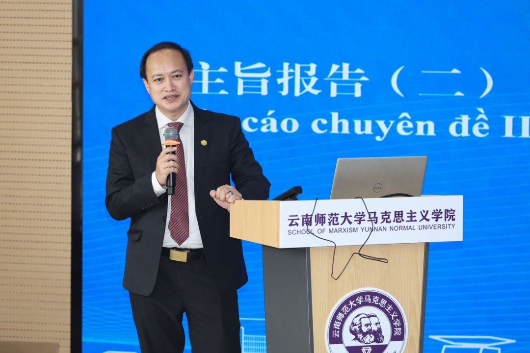校党委副书记和雪莲在致辞中介绍了学校传承西南联大红色基因、深耕教师教育87载的历史。近年来,学校依托区位优势开展南亚东南亚国际交流,积极构建国际中文教育体系,培养了一批精通中越语言文化的国际化人才。希望加强“中越马克思主义理论比较研究”领域研究,为两国在理论层面的交流提供学理支撑;聚焦中越治国治党和文明交流互鉴中的重大理论与现实问题,组织科研团队开展联合攻关,深入研究中越两国在社会主义建设过程中如何运用马克思主义理论解决实际问题;搭建合作机制和交流平台,培养具有国际视野、精通马克思主义理论且熟悉中越两国国情与文化的复合型人才。