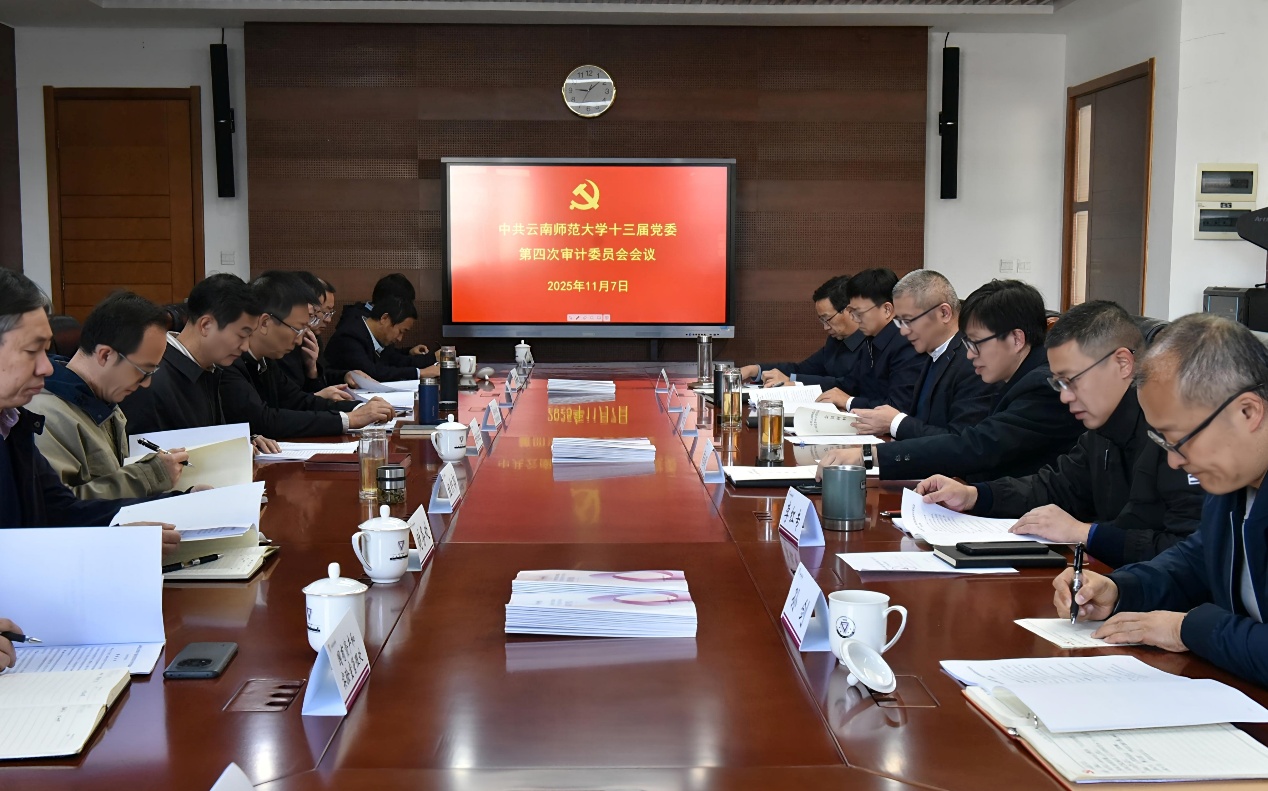 11月7日,学校召开中共云南师范大学第十三届党委审计委员会第四次会议。会议传达学习习近平总书记关于党的自我革命的重要思想,审议了《云南师范大学领导干部经济责任审计评价实施办法》、2025年学校经济责任审计和专项审计工作,审议通过了2025-2026年度学校审计工作计划。