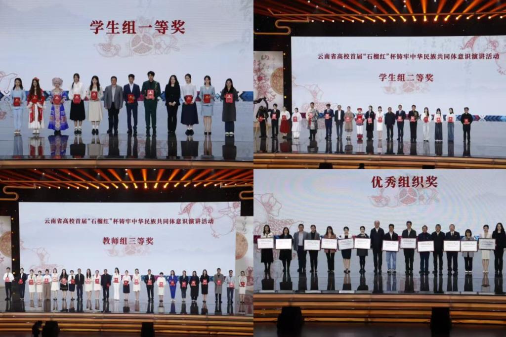 11月15日,由云南省民族宗教事务委员会、云南省教育厅、共青团云南省委主办的云南省高校首届“石榴红”杯铸牢中华民族共同体意识演讲比赛决赛在云南艺术学院举办。我校师生在比赛中表现优异,获一等奖1项,二等奖1项,三等奖2项,云南师范大学获“优秀组织奖”。