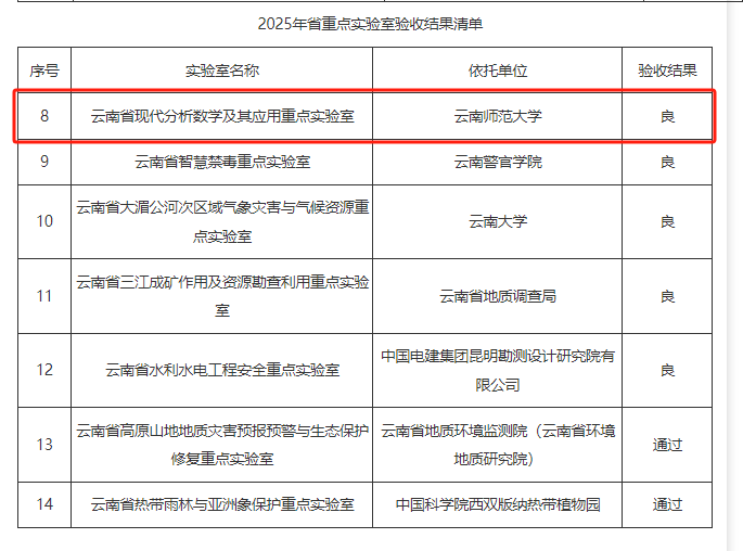 本科教育教学水平显著提升。数学与应用数学专业通过教育部师范专业二级认证,获批2门国家一流课程、4门省级一流课程,64门课程获评校级A/B 类,数量居学校理科院系首位;“统计学”专业入选云南省一流本科专业建设点。2023年本科教学工作考核获学校理科组第一名,2024年获第二名。成立“数学拔尖创新人才培养研究中心”,制定“武之”拔尖班培养方案,开设本科生数学与应用数学专业“武之”拔尖班。顺利完成本科教育教学审核评估。