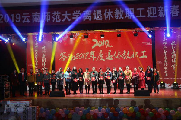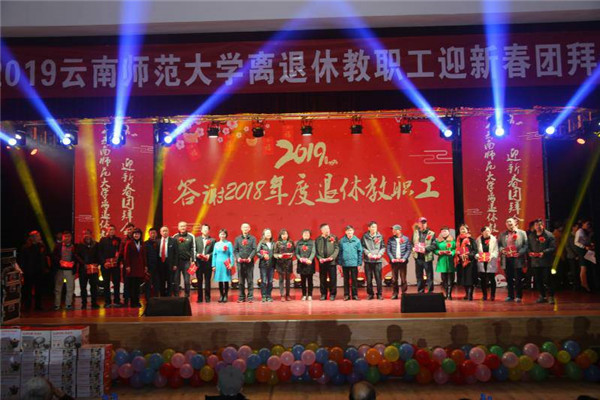 110日下午,在新春佳节到来之际,我校离退休教职工欢聚一堂,在一二一西南联大校区离退休教职工西院活动中心举行离退休教职工2019年迎新春团拜会。参加会议的有离退休教职工2018年度受表彰的老有所为先进个人,2018年度退休教职工,学校老领导,离退休工作领导小组成员单位负责人,职业技术教育学院负责人,离退休教职工党委总支书记、副书记、支部书记、支委,离退休教职工各团体协会负责人、行政组长、活动中心(室)管理员共200余人。团拜会由退休教师周林主持。