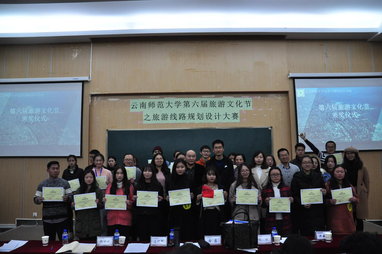 为展现祖国山河的魅力,弘扬现代旅游精神,2018年12月28日下午,旅游与地理科学学院第六届旅游文化节暨旅游线路规划设计大赛在旅游与地理科学学院大厅正式开始本次大赛特邀旅游系主任徐磊老师、旅游系教师左俊辉老师、沈琼老师,植物地理专业杨丽娥老师,辅导员许云娜老师担任评委,来自21个学院、社团组成的30支队伍共计300余人参加了此次比赛。