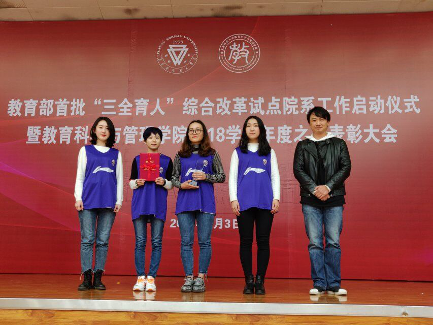 为深入学习贯彻习近平总书记在全国宣传思想工作会议重要讲话精神,根据教育部相关工作要求,进一步好落实建设任务和建设标准,教育科学与管理学院于2019年1月3日在汇文楼3区105报告厅举行了教育部首批“三全育人”综合改革试点院系工作启动仪式暨教育科学与管理学院2018学生年度之星表彰大会。本次活动得到了校党委副书记张玮、副校长刘坚的指导,党委宣传部、学生工作部(处)、校团委、研究生部相关负责人出席活动,教育科学与管理学院党政领导班子、全体教职工、学生代表共400余人参加活动,活动由教育科学与管理学院党委副书记刘虹主持。