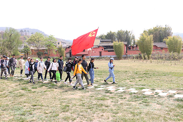 宣讲团首先参观了红军纪念馆,在讲解员的带领下重温长征历史。遵义会议、四渡赤水、巧渡金沙江……八十多年前的画面仿佛正在眼前上演,这一幕幕是党的奋斗历史,更是人民的奋斗历史。在丹桂村中央红军总部前,郑伟俊老师带领宣讲团的党员们面对党旗,重温入党誓词,不忘九十年之艰苦奋斗历程,牢记初心使命,一路向前。随后,宣讲团在党旗的引领下,重走长征路。“红军不怕远征难,万水千山只等闲”,大家在这一路上重温了红军将士在云南留下的点点滴滴,重走长征路,在磨练中成长。回顾长征历史,缅怀先烈。