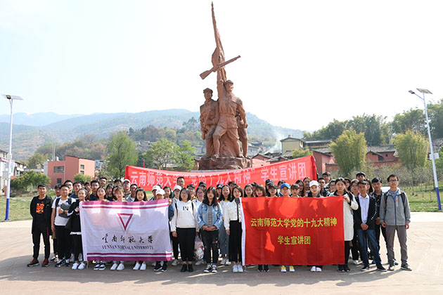 为进一步贯彻落实习近平新时代中国特色社会主义思想,大力弘扬红军长征精神,3月23日,云南师范大学“党的十九大精神”学生宣讲团50余人在校团委副书记郑伟俊老师的带领下来到柯渡镇红军纪念馆参观并走访慰问老党员。