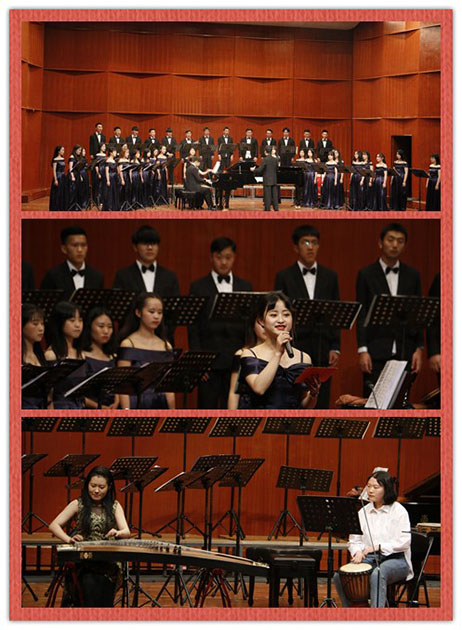 音乐会在高亢激昂的《龙的传人》中拉开序幕。“千秋耻,终当雪;中兴业,须人杰”,校歌的演绎使观众们重温了西南联大精神,激发了在座师生的爱校荣校情感。合唱团精湛演绎的合唱曲目《大鱼》与《四季的问候》,悠扬的歌声令人流连忘返。带有着浓厚的民族性与地域特征的古筝曲《西部主题畅想曲》将中国传统音乐表现得淋漓尽致。《可惜不是你》与《贝加尔湖畔》两首风格迥异的流行曲带给观众别样的视听感受。陶笛独奏《千年风雅》独特的中国风韵,将观众带入深远幽思的意境。满怀思乡之情的《梨花又开放》让观众回味无限。钢琴独奏《山丹丹花开红艳艳》和《野蜂飞舞》以欢快的旋律将整场音乐会推向高潮,宛转的琴声深深感染着现场的每一位观众。《菊花台》和《时间都去哪儿了》两首饱含深情的流行歌曲以温柔的旋律缓缓流入观众的心田,真挚的演绎引起了观众的共鸣。演出在《中国共产主义青年团团歌》中圆满落下帷幕。