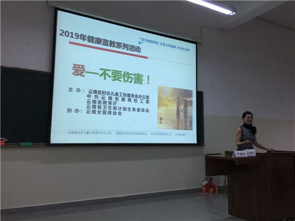 宣讲嘉宾昆明市妇幼保健院妇科主任邓继红教授围绕主题给大学生们普及了女性健康知识,对大学生恋爱过程中遇到的问题和困难进行了辅导,对如何树立正确的恋爱观及自我保护意识进行了指导,对女性如何保护自身健康进行了教育。
