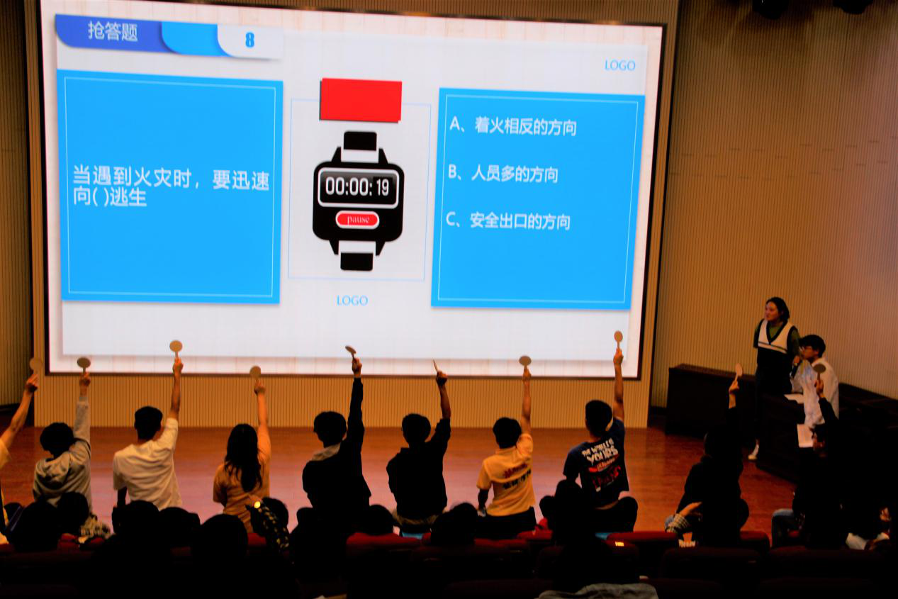 活动由安全知识主题教育演讲和知识竞赛组成。知识竞赛分为抢答题、必答题、风险题;竞赛内容以“十防”、扫黑除恶、消防安全、宿舍安全、校园出行安全等方面的知识为主。比赛紧张而有序地进行,各代表队经过认真的准备,呈现了精彩的答题现场,和内容丰富、生动且不失教育意义的安全主题演讲。现场互动环节,各位同学更争先恐后地举手答题,为班级加分。经过激烈的角逐,最终决出了此次竞赛的一、二、三等奖和优秀奖。