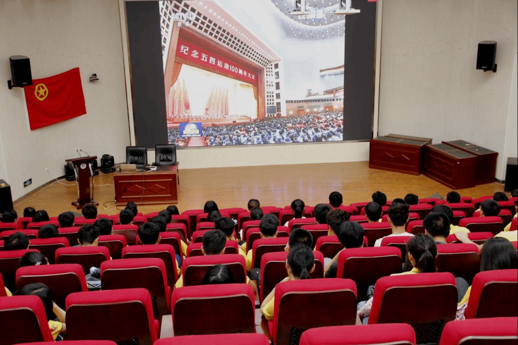 活动开始,全体师生合唱了《歌唱祖国》《我和我的祖国》等爱国歌曲,并集体观看了习近平总书记在纪念五四运动100周年大会上的重要讲话视频,重温大会盛况,学习大会精神