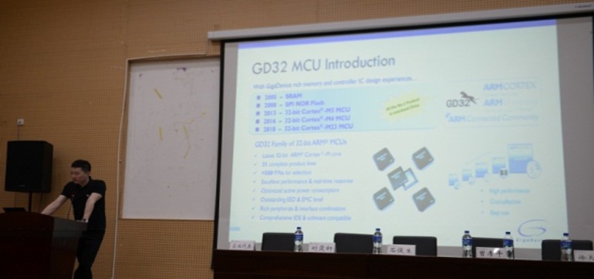 会议第五部分,由兆易创新市场部总监——金光对本次研电赛为所有参赛队伍免费提供的储存芯片及其性能进行介绍。