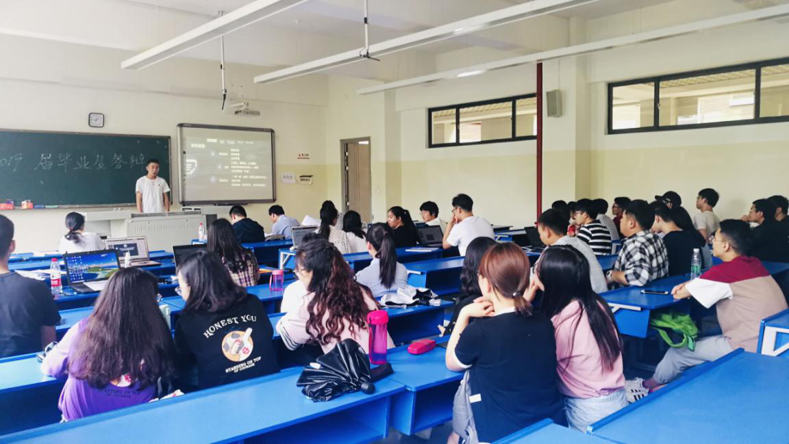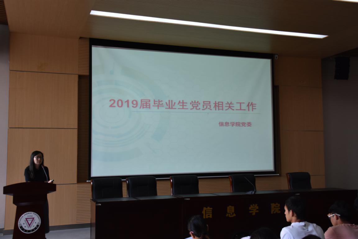 2019年5月24日上午,信息学院在睿智4号111报告厅召开了2019届毕业生离校工作推进会,学院党委副书记刘德鹏,辅导员蔡文华、徐旻、刘萌、陈思行,以及全体毕业生参加了此次会议