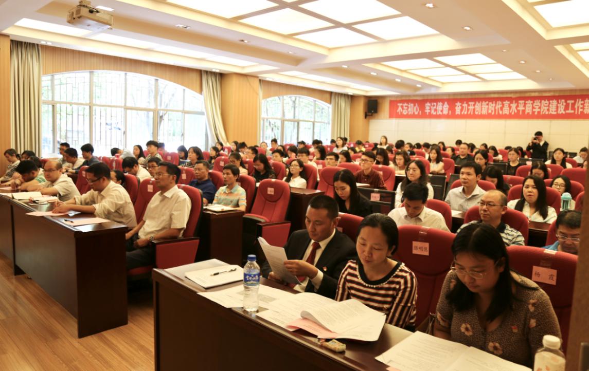 泛亚商学院党委书记陈玉林同志代表学院党委作了题为《不忘初心、牢记使命,奋力开创新时代高水平商学院建设工作新局面》的党委工作报告。报告从党建工作、学科建设、教学管理、师资建设、科研创新、社会服务、学生工作等七个方面全面回顾和总结了学院四年来所取得的成绩,并指出了目前存在的问题以及学院下一步发展的总体思路。报告指出,学院要坚持社会主义办学方向,弘扬西南联大优良传统,保持已有的学科优势和特色,坚持“立足云南、辐射泛亚、融通世界”的办学定位,坚持“党建促发展、学科为主线、人才做保障、质量求生存、内涵树品牌”的工作思路,紧紧围绕工商管理一级学科硕士点建设为目标,走内涵提升、科学发展的道路,努力把泛亚商学院建成优势突出、特色鲜明、综合实力位居西南地区高水平的商学院。报告经大会审议后,获得与会正式党员的一致表决通过。