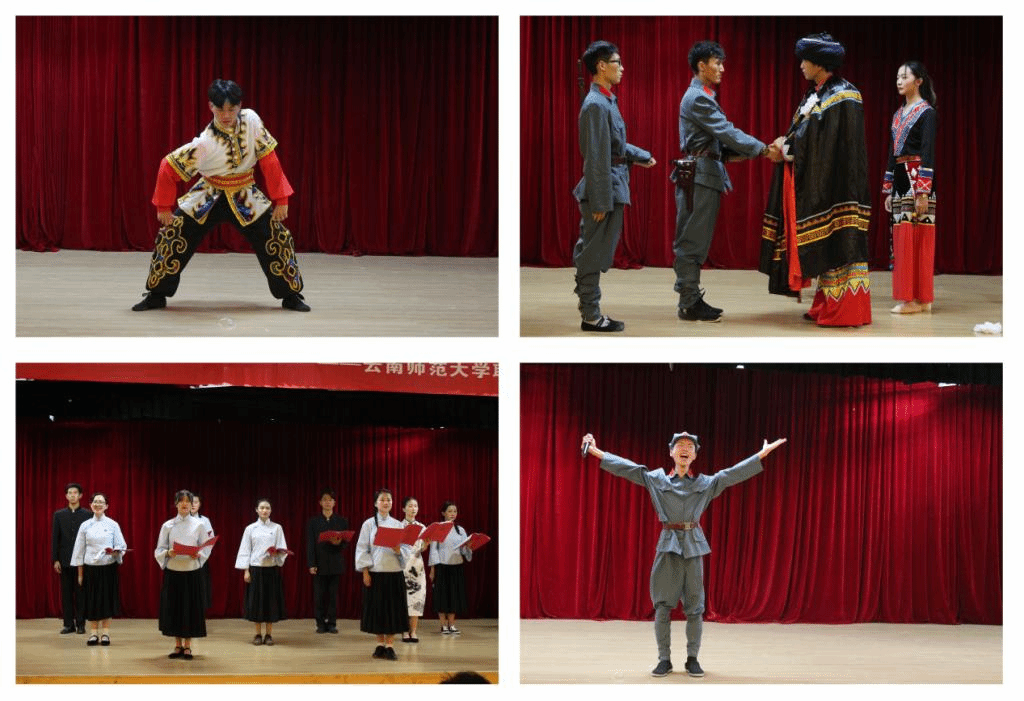 此次汇报表演分为追寻联大精神、边疆民族颂党恩、长征组歌三个主题。“追寻联大精神”这一主题,朗诵《联大长征》和《追寻联大梦》带领现场观众追忆联大光辉岁月,80年薪火相传“千秋耻,终当雪中兴业,须人杰西南联大弦歌继响舞台情景剧《闻一多的最后一次演讲》慷慨激昂,最后的黎明终会来临——一个崭新的中国。“边疆民族颂党恩”主题讲述了热血岁月里各个民族在红土高原上奋斗的故事《美丽的怒江我的家》颂扬了中国共产党的伟大成就,赢得台下阵阵掌声。主题“长征组歌”朗诵、话剧、合唱及舞蹈等多种方式,演绎一代代热血青年为踏循革命足迹、征服坎坷路途而付出鲜血与汗水的故事红军不怕远征难,万水千山只等闲”的气概激励新时代青年学子汇聚起同心共筑中国梦的磅礴力量。