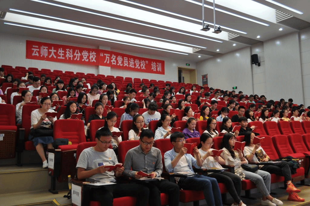 2019年6月4日至6日,云南师范大学生命科学学院分党校在能源与环境科学学院107报告厅开展了为期三天的“万名党员进党校”第一期培训,来自物电、化工、能环、生科四个学院的162名党员参与了此次培训。本次培训主要由重温入党誓词、党员政治生日、党章诵读、专题讲座、小组研讨等部分组成。