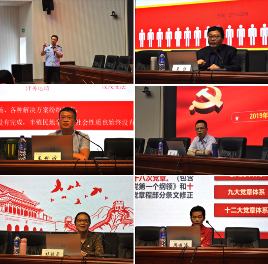 本次培训主要以6个专题辅导为主:呈贡分局吴家营派出所社区倪辉警官作了“重拳出击扫黑恶,忠诚担当保民安”的专题报告,倪警官介绍了近段时间以来扫黑除恶的成果,以一个个发生在身边鲜活的例子深入分析,教育党员要心系群众安危,增强明辨是非的能力。能源与环境科学学院党委书记王强老师围绕《中国共产党支部工作条例(试行)》和《中国共产党党员教育工作条例》,解析了支部建设和党员教育的重要意义。物理与电子信息学院党委书记王世波老师作了“深入学习习近平新时代中国特色社会主义思想”的专题报告,他结合实际进行分析,希望同志们都能积极发挥先锋模范作用。生命科学学院党委书记周滔老师从近几年来贪腐案例讲起,为参加培训学习的党员同志解读《中国共产党纪律处分条例》(2018版),强调“党要管党,从严治党”,牢固树立共产党员的党纪党规意识。化学与化工学院党委副书记杜敏菊老师作了“深入学习习近平总书记关于意识形态工作和宗教工作的重要论述”的专题报告,她呼吁各位党员同志重视生活中已经暴露出来的意识形态问题和宗教问题,牢固树立“四个自信”,尤其是文化自信,明确处理问题的态度和立场。生命科学学院党委委员周峻沛老师解读《中国共产党章程》,重点讲解了十九大新修订的党章,并以时政热点与名师讲堂相结合,号召大家做“四讲四有”的合格党员。