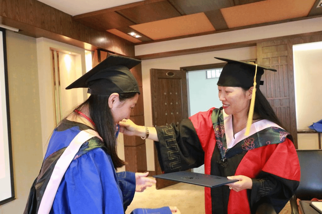 随后,马煜书记宣读了成人继续教育学院2019年上半年硕士学位授予名单,唐瑛院长为毕业生拨穗正冠、颁发毕业证书。