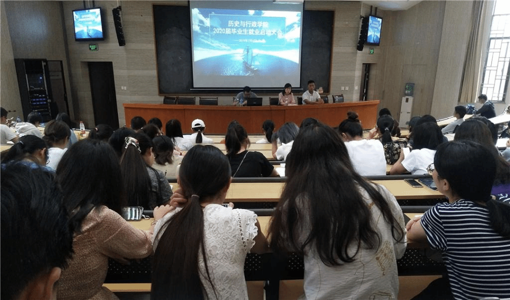 为做好学院2020届毕业生就业工作以及指导学生对于未来职业规划的设计,7月3日下午,历史与行政学院在明德三号楼101报告厅召开2020届毕业生就业启动大会。学院团委书记周鹏老师、邓仕海老师、王琳娜老师、唐培丽老师以及2020届毕业的全体学生参加此次会议,会议由周鹏老师主持。