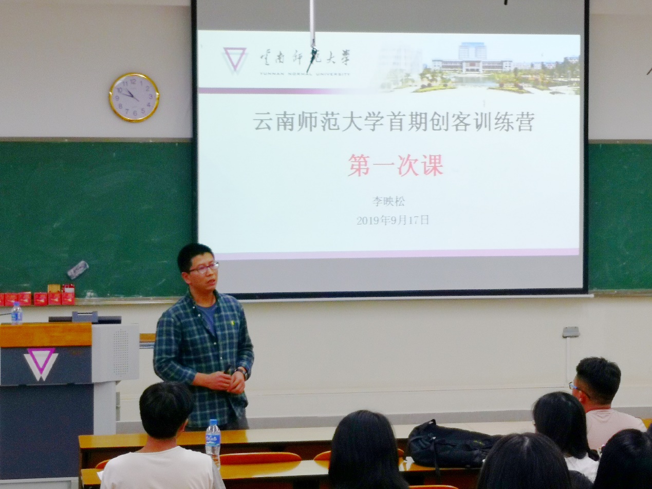 第一次课上,就业处李映松老师首先介绍首期“创客训练营”的整体情况、课程及活动内容安排、考核要求等,接下来他基于生涯理论、霍兰德人格类型论、创业者行为等内容对创业认知这一主题进行了分享。昆明兴滇科技孵化器总经理钟健文基于多年对创业项目孵化的经验,针对“创客”及“创客”文化进行了解读。