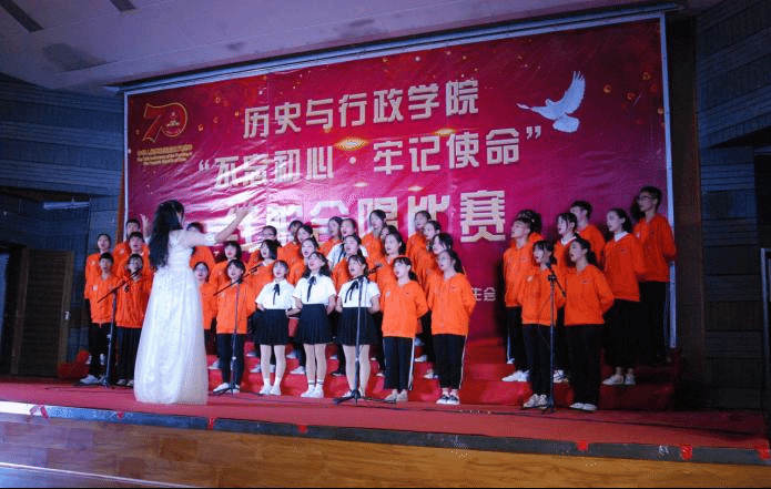 9月27号晚,我校历史与行政学院在汇文三区105报告厅举行了“不忘初心、牢记使命”红歌合唱比赛。学院党政领导班子、各班班主任出席,2018级、2019级的600余同学参加了此次合唱比赛,用歌声献礼新中国70华诞。
