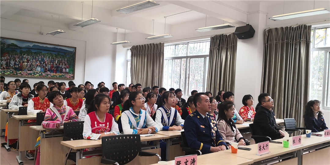 团中央青年讲师团成员、团云南省委兼职副书记、云南大学专职辅导员朱丹,团中央青年讲师团成员、贵州财经大学学工部副部长、副教授、研究生导师刘岩岩,团中央青年讲师团成员、辽宁省公安消防总队抚顺支队新抚大队副大队长高大千,团云南省委宣传部张文涛,云南民族中学党委书记邹飒,云南民族中学团委书记、党政办公室主任茶利军,云南民族中学团委副书记王丹及云南民族中学50余位师生代表参加了本次宣讲活动。活动在嘹亮的国歌声中拉开了帷幕。