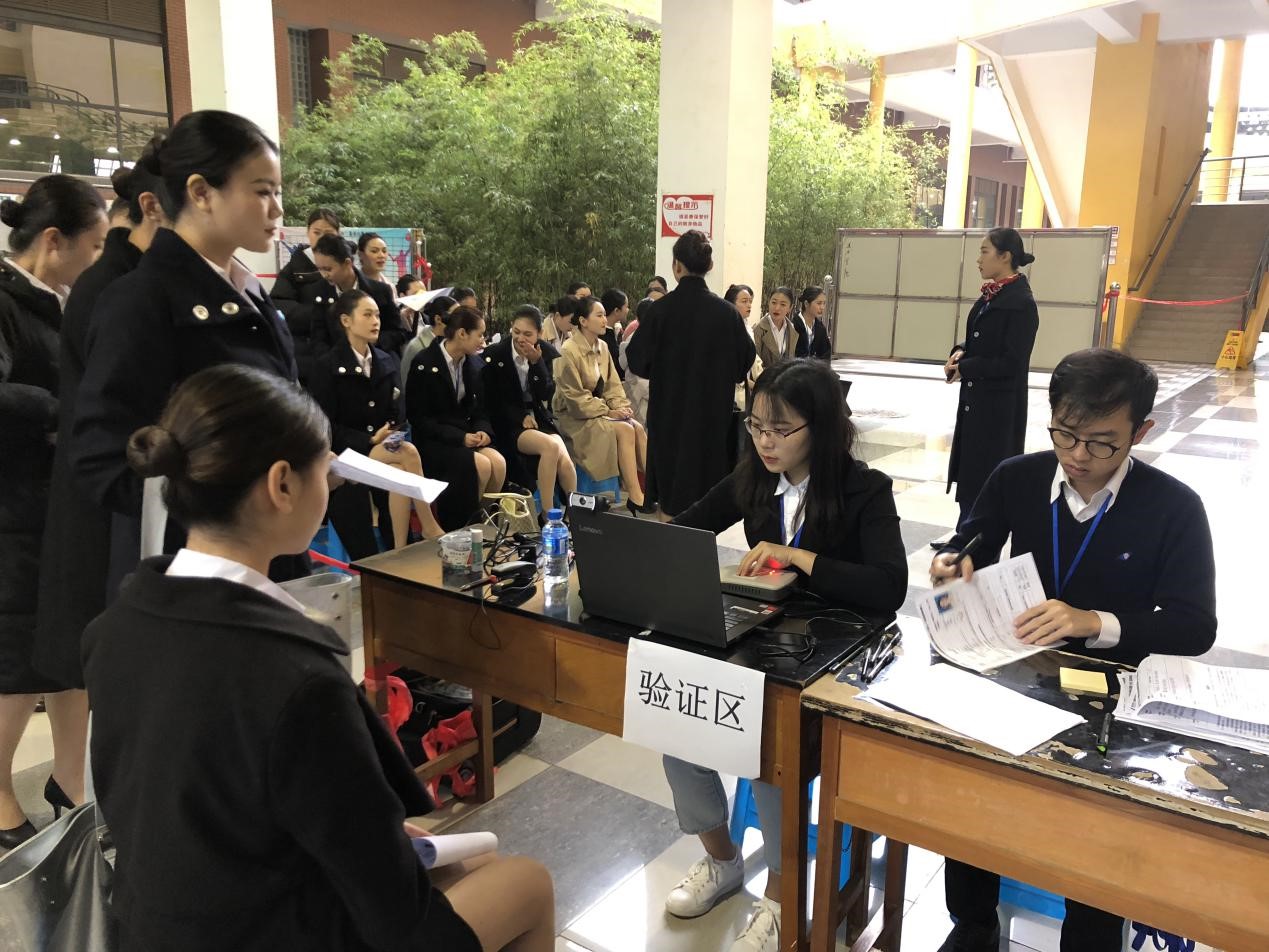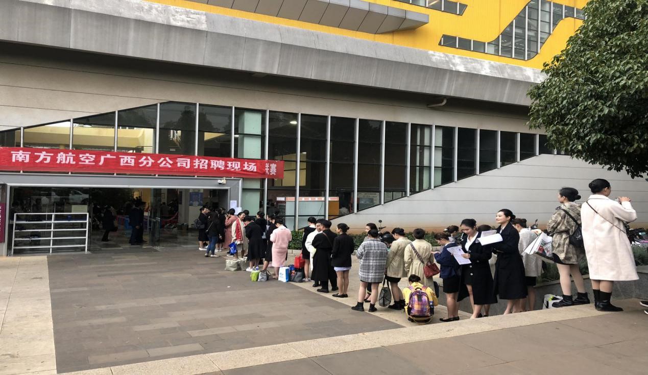 20191113日,中国南方航空股份有限公司广西分公司针对大三、大四在校生的招聘活动在我校东区体育馆雏鹰馆举行。经过初试、复试环节,我校空乘专业23名同学通过考核,除了复试之外,后续还有试装、体检、笔试等考核环节。招聘活动吸引了云南多所院校空乘专业和其他专业600余名同学参加。