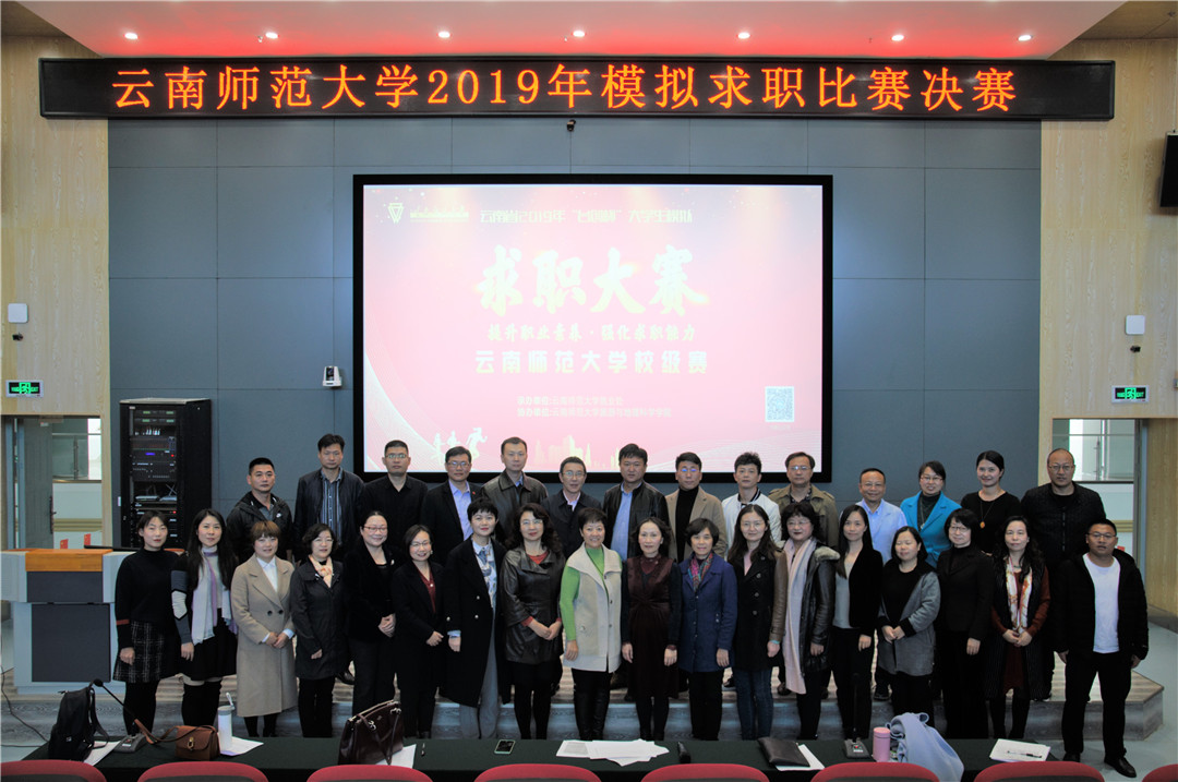 为全力做好我校大学生就业指导工作,加大就业服务工作力度,创新就业指导模式,引导大学生了解用人单位需求、合理进行职业规划,根据《云南省教育厅 云南省人力资源和社会保障厅关于举办云南省2019年“台创杯”大学生模拟求职大赛的通知》文件精神,以赛促教、以赛促学、以赛促训,提升我校毕业生就业能力,就业处于2019年11月16日至17日在呈贡校区国家教师教育教学实验中心举行了云南师范大学2019年模拟求职比赛决赛。