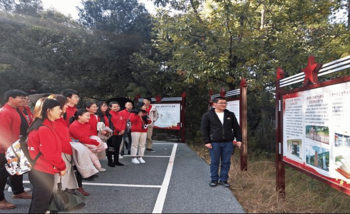 在革命老区纪念碑前,组织员(兼研究生党支部书记)段灿映同志带领研究生党员,面向鲜红的党旗重温了入党誓词。