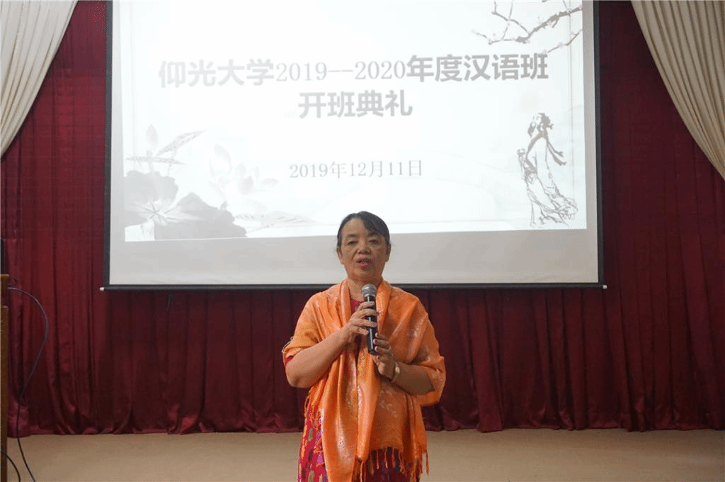 开班仪式上,仰光大学缅语系的Dr. NYEIN NYEIN 教授在讲话中表示,学习汉语对大家的帮助很大,让大家在工作上有了更多选择,希望大家珍惜学习机会,努力学习,同时对东方孔子课堂老师们的付出表示感谢。