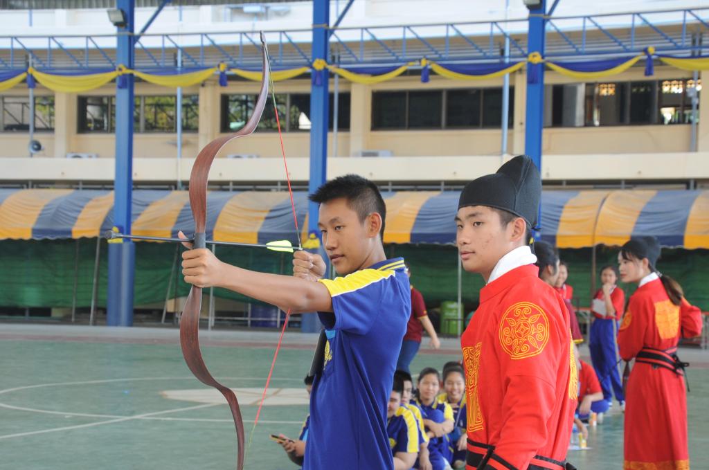 中国体验文化区设置了功夫扇、射仪、剪纸、中国结四个项目,动静相宜、松弛有度的活动,达到了寓乐于教的效果。中国功夫扇的李老师让学生们学习了陈氏太极功夫扇,射仪的许老师为学生们讲解了孔子六艺的“射”文化并演示了射仪的基本动作要领,随后手把手的教学生们进行了射艺练习。