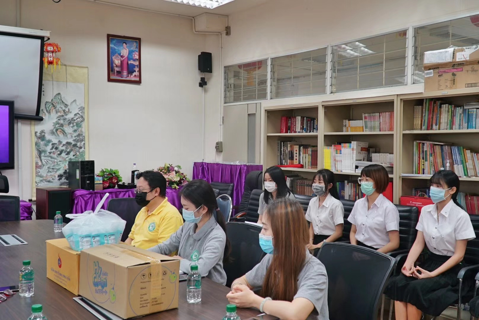 此次到访清迈孔院,领事馆向清迈孔院全体教师捐赠了一大批便携消毒洗手液、消毒湿巾等防护物资,令清迈孔院全体教师及实习生们倍感温暖。(清迈大学孔子学院供稿)