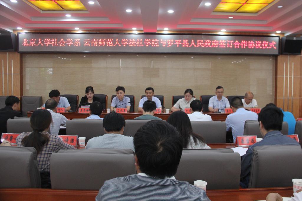 8月4至10日,北京大学社会学系石长翼副书记一行到访我校法学与社会学学院,双方举行了交流座谈会,之后共同组团赴罗平进行科研社会调查。在罗平调查期间,我校法学与社会学学院与罗平县政府签订了合作协议,举行了北京大学社会学系、云南师范大学法学与社会学学院科研与社会实践基地授牌仪式。