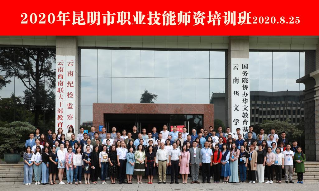 受昆明市人力资源和社会保障局和昆明市劳动就业局的委托,我校继续教育学院于8月24日至29日,协助云南泛海创业研究中心举办“昆明市2020职业技能师资培训”。8月25日上午,我校继续教育学院院长唐瑛、人社厅职业能力建设处副处长孔繁荣、昆明市劳动就业服务局局长万正文、昆明市人社局职业能力建设处处长张丽娟、昆明市劳动就业服务局副局长冯云波以及103位昆明市企业高技能人才、职业培训机构教师参加了开班仪式。