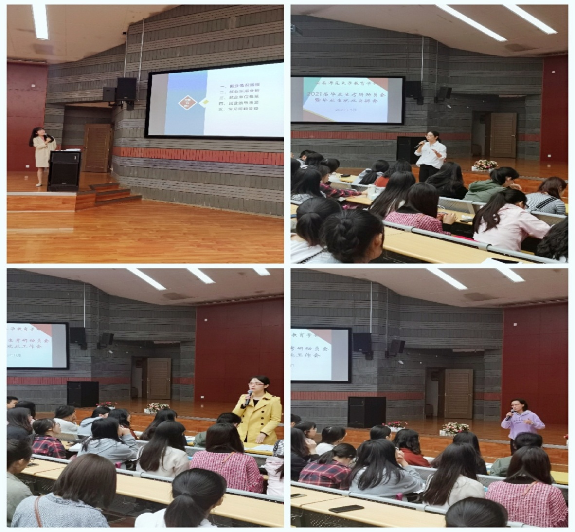 为进一步传达学校党委关于鼓励毕业生考研的通知精神,进一步做好2021届毕业生就业工作,教育学部于9月11日上午在汇文楼报告厅召开了2021届毕业生考研动员会暨就业工作会。教育学部学生工作办公室、教务办公室、研究生办公室、毕业班班主任以及2021届毕业生参加了会议。会议由教育学部党委副书记朱静虹主持。