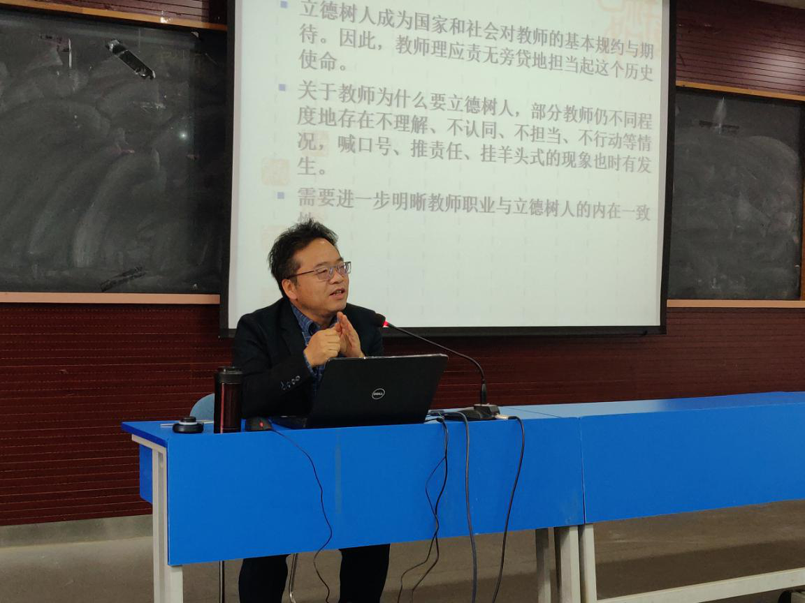 教育学部主任李长吉同志以“教师为什么要立德树人——中国传统文化的回答”为主题,探析立德树人的思想根源,讲解了中国传统文化中的教育思想精髓,为大家上了一堂生动的党课、思政课、传统文化课和教育史课,让同学们进一步坚定了文化自信。