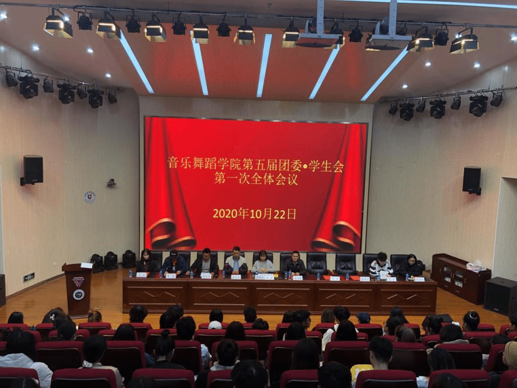 大会在庄严的中国共产主义青年团团歌——《光荣啊!中国共青团》中拉开序幕学生会主席杨枝传作音乐舞蹈学院第四节学生会工作汇报,代表学生会表态,表示将不断努力,继往开来,用心用情做好服务。学院团委副书记王翌表示积极开展团日活动,提高团组织的凝聚力。学生会外联部部长赵丽娇分享了自己曾作为学生会成员的经历讲述了学生工作的意义希望每个人都能在这里找到自己的目标,不虚度年华学有所得学有所思。2020级学生王俊禹代表全体新加入的学生干部发言,表示在新的起点,一定奋发有为,做好学院团委·学生会工作。