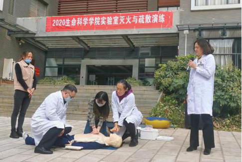 2020年10月22日下午,为加强实验室的消防安全工作,增强师生的消防安全意识,提高突发灾害事故时紧急疏散等应急处变能力,生命科学学院联合保卫处、校医院和后勤保障处在睿智3号楼(生命科学学院)开展了实验消防应急疏散演练活动。