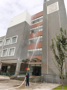 全体师生在4分钟之内按预定的疏散路线安全有序撤离到安全地带,随后进行清点人数。保卫处接到火警电话后迅速出动,到达现场后消防人员利用高压水枪从实验楼外进行灭火,并出动消防人员进入大楼内起火点被困人员