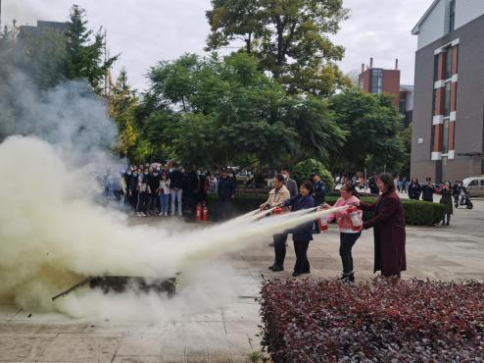 在疏散和紧急救援演练结束,总指挥保卫处胡兆海处长宣布火险解除,并对本次疏散演练进行了总结。随后,生命科学学院范丽仙院长等班子成员与在场师生一起参加了由校医院院长欧阳慧蓉老师指导的心脏复苏急救方法练习昆明市消防安全应急服务中心罗鹏教官指导的灭火器使用活动。在培训的整个过程中,师生热情高涨,积极参与人工急救和干粉灭火器的学习和实际操作。