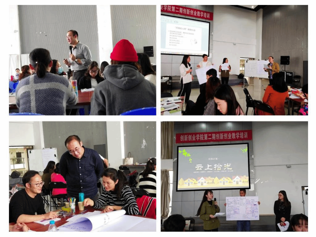 本次培训班一共分为6组,每组8人左右,每位老师都亲身参与创业实践。通过此次培训,老师们感受到“创践”教学法的魅力,所有环节都积极参与,踊跃发言,现场气氛十分热烈。参训老师纷纷表示深受启发,收获颇丰,以后将深入实践,运用灵活多样的方式方法开展创新创业教学,进一步培养学生的创新精神、创业意识和创新创业能力。