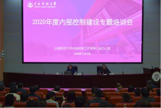 为认真贯彻落实党的十九届四中、五中全会精神,加快推进我校治理体系和治理能力现代化,进一步增强各级领导干部依法治校意识,规范内部管理,提升科学管理水平,根据《财政部关于全面推进行政事业单位内部控制建设的指导意见》《云南省财政厅关于开展全省行政事业单位内部控制基础性评价工作的通知》等相关文件精神要求,结合学校工作实际,11月19日下午,由学校内部控制工作领导小组办公室牵头组织的2020年度内部控制建设专题培训会在呈贡校区西边中心报告厅举行,特邀省财政厅行政事业单位内部控制建设主讲专家、云南大学财务处副处长任伟高级会计师到校为相关职能部门作了题为“行政事业单位内部控制标准模板建设”的专题培训。