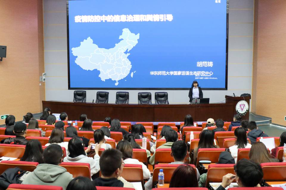 此次讲座内容围绕新冠疫情防控中的话语体系控制与研究展开。胡范铸教授认为,新冠疫情是一场全民“战疫”,疫情防控需进行社会动员与全民参与,要把握疫情话语传播的先机,注意疫情预防中的信息治理与舆情引导。