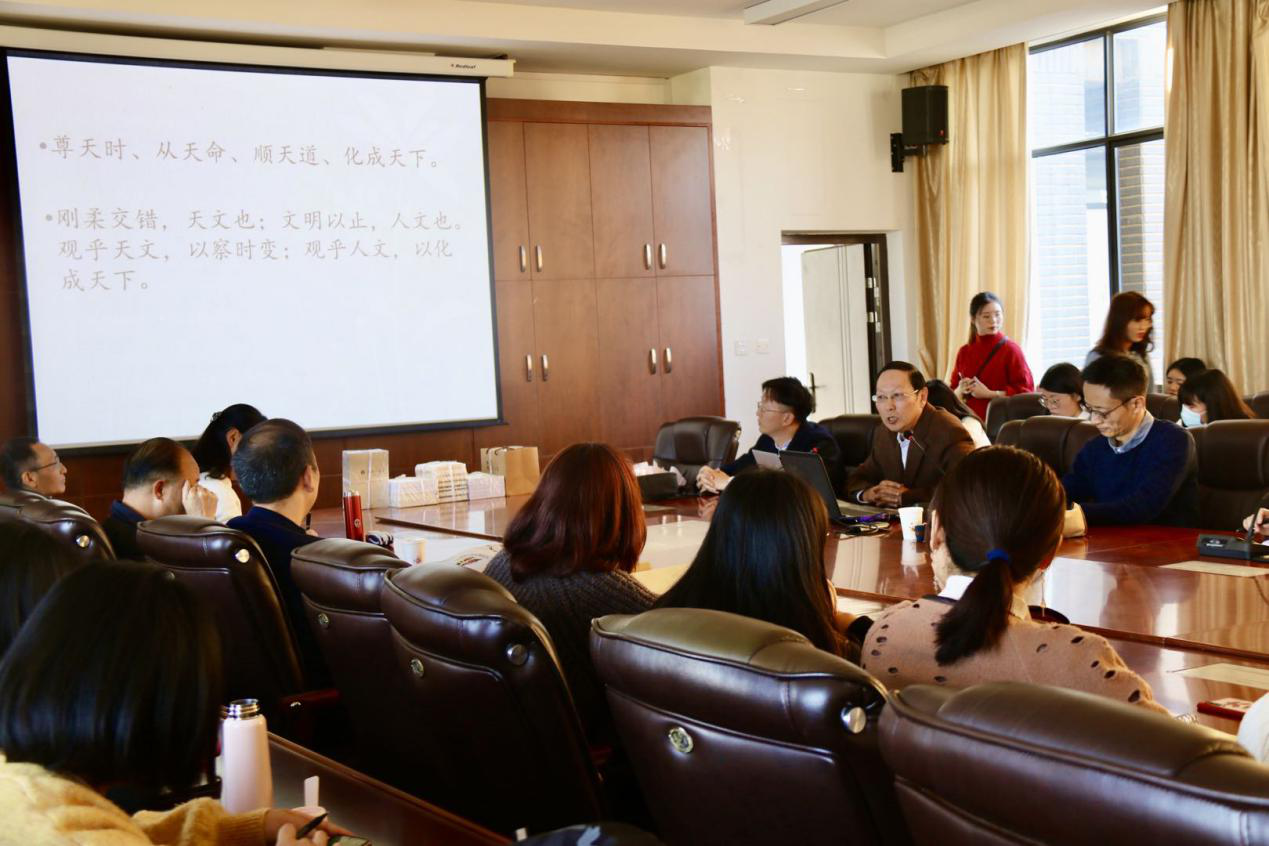 施惟达教授结合自己多年积累的经验及思考,从诗歌之感物起兴:与自然同悲欢、诗歌之情感交融:万物与我为一、诗歌之言近旨远,超越表象的世界、诗歌之温柔敦厚,与天地相俯仰四个方面来分析中国古代诗歌与诗论中的天人合一,并一一进行详细讲解。施惟达教授以全新的视角解读了中国古代诗歌与诗论中的天人合一,在座师生受益匪浅。