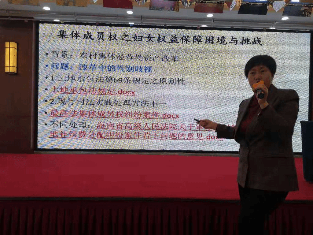 此次专题辅导围绕民法典总则篇、物权编、人格权编、婚姻家庭篇等视角下的妇女权益保障以及对妇联工作的思考等方面展开。杜爱萍老师结合自己广博的知识储备,从民法典视角下妇女权益保障的背景出发,以走近民法典的各项权益为切入点,精心挑选案例,释法说案,对民法典视角下的妇女权益保障问题进行了全面的介绍。