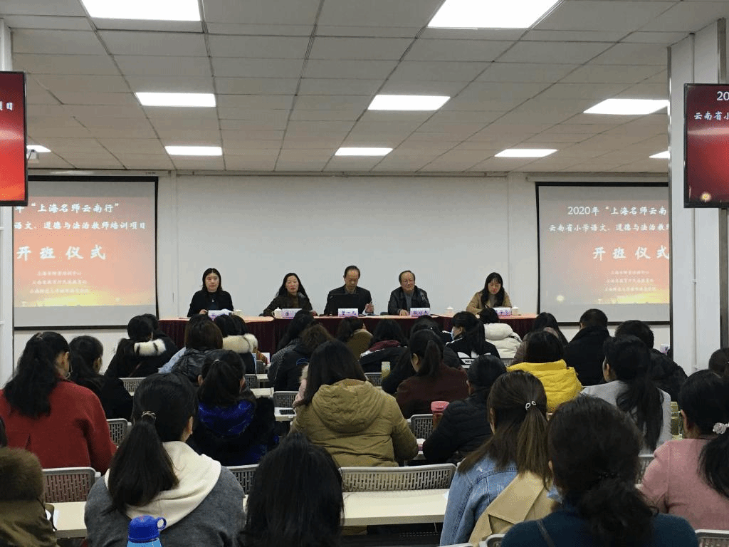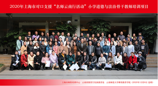 受云南省教育厅民族教育处委托,我校继续教育学院于12月7日至11日,协助上海市师资培训中心举办了2020年上海市对口支援“名师云南行活动”小学国家统编教材语文、道德与法治学科骨干教师培训。8日上午,上海市师资培训中心副主任殷以杰、交流协作部主任张涛,云南省教育厅民族教育处处长董一凡、李宇飞,我校继续教育学院院长唐瑛出席了开班仪式,150位来自云南省74个项目县的小学语文、道德与法治学科骨干教师参加了开班仪式。